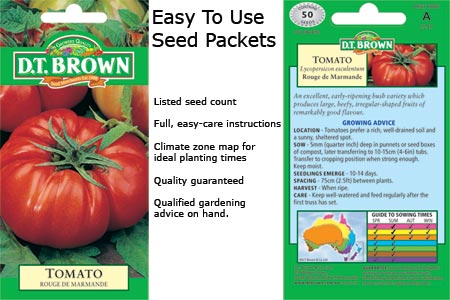 In Australia, DT Brown Seeds and Bulbs means great gardening products at best value prices. With products to meet the needs of Australian gardeners, our seeds are guaranteed to perform.
